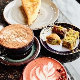 I really wished I lived in San Mateo because this is one of the best coffee shops I've been to! The Rose Cardamom Honey latte is definitely a must - from its presentation to the harmonizing flavors - you won't regret getting that! I enjoyed the saffron milk cake. They definitely did not skimp out on the saffron flavor. The Turkish coffee was made authentically and really gave my that caffeine boost to start the day. The only thing to keep in mind is that there is limited seating. Otherwise, the decor is very elegant!